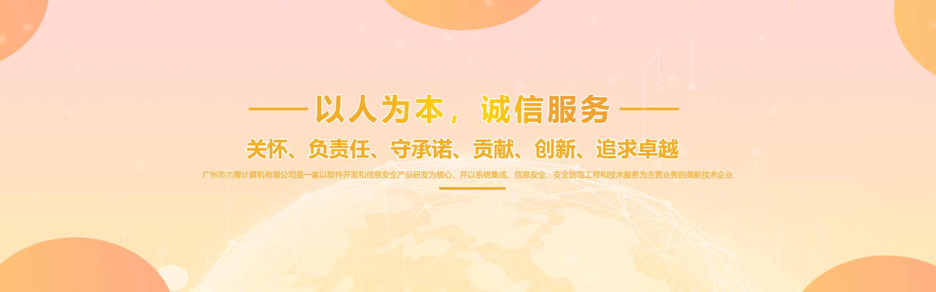 廣州市杰青計算機有限公司成立于2002年,是一家以各行業解決方案應用為核心,以系統集成、信息安全和技術服務為主營業務的高新技術企業。作為成立二十二年的系統集成公司,杰青始終堅持“關懷、負責任、守承諾、貢獻、創新、追求卓越”的企業文化,“以人為本,誠信服務”服務理念,致力于為政府、教育、醫療、制造等行業提供先進可靠的信息產品和全面的綜合解決方案。